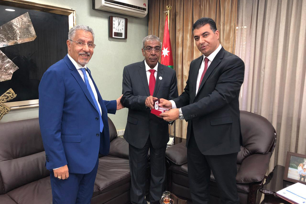 التقى سعادة مطر سيف الشامسي سفير دولة الامارات العربية المتحدة في المملكة الأردنية الهاشمية بمكتبه صباح الأحد 24 يونيو 2018 في العاصمة الأردنية عمّان بوفد جائزة خليفة الدولية لنخيل التمر والابتكار الزراعي برئاسة سعادة أ.د عبد الوهاب زايد المستشار الزراعي بوزارة شؤون الرئاسة